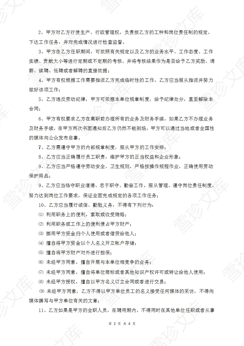 表1:针灸专科医院聘用合同核心条款拆解(文档节选)