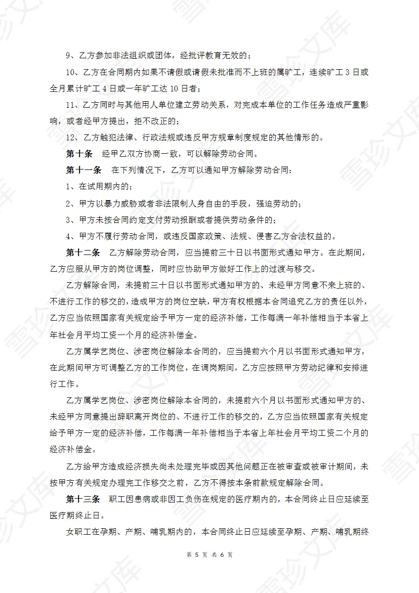 除了上述基础条款,这份合同模板在“防范员工违约”的细节上做得非常绝: