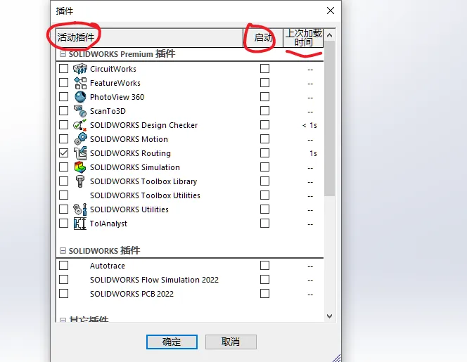 使用SolidWorks好多年了,有没有人跟溪风一样,不知道SolidWorks插件里面的活动插件和启动两个什么区别?如何勾选的呢?如下图所示: