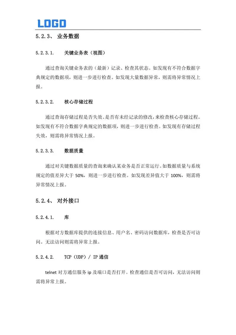 10.1.2、 业务功能巡检表