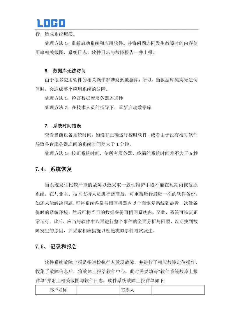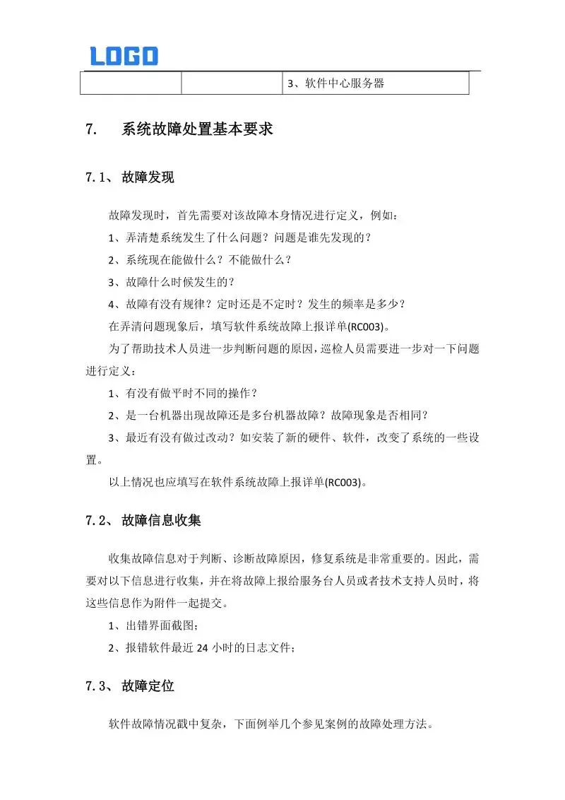 7. 系统故障处置基本要求