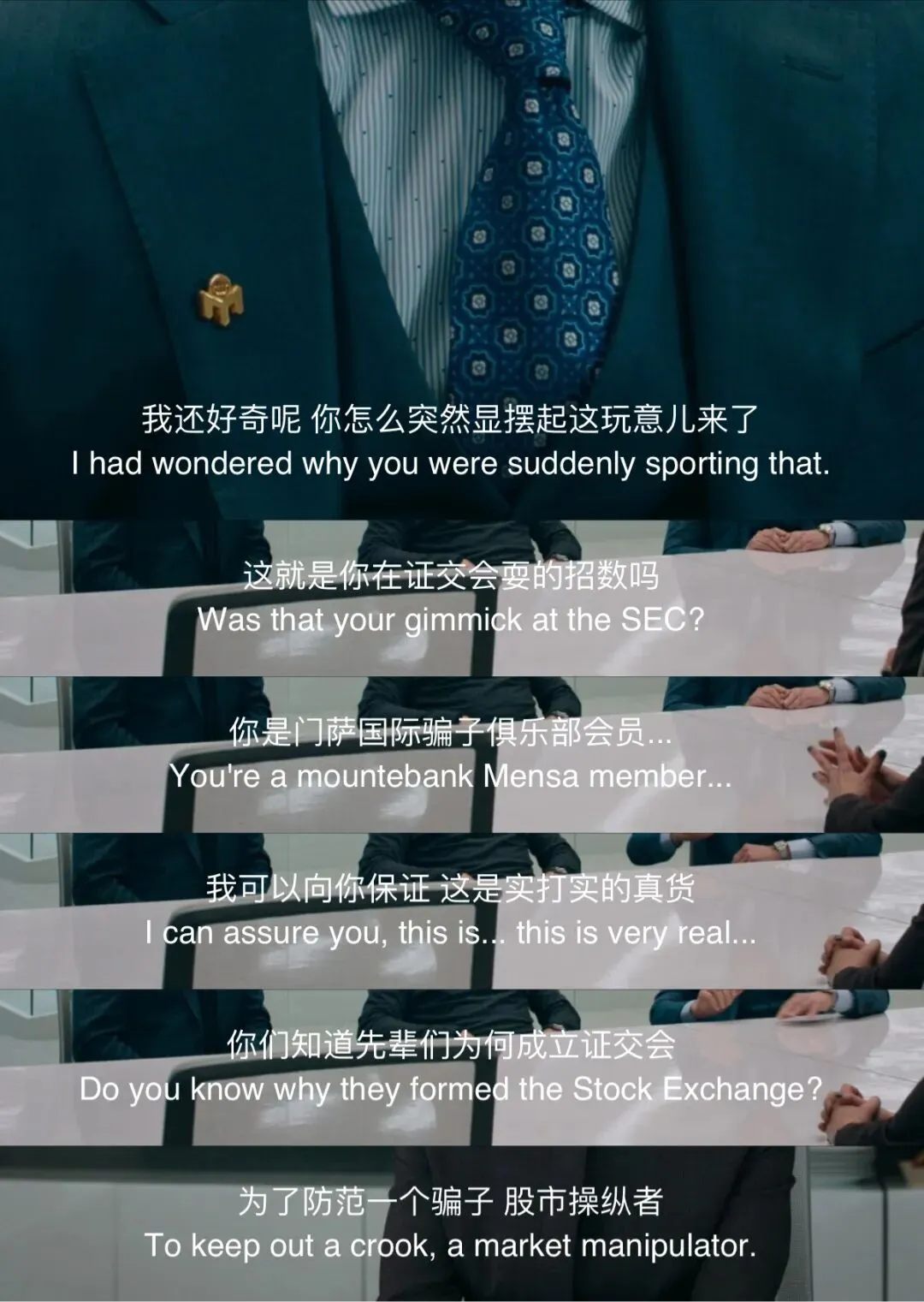 《Billions Season 5》(亿万 第五季)(2020)— “I had wondered why you were suddenly sporting that. Was that your gimmick at the SEC?“— “You’re a mountebank Mensa member…“— “I can assure you, this is… this is very real…“— “Do you know why they formed the Stock Exchange?“— “To keep out a crook, a market manipulator.“