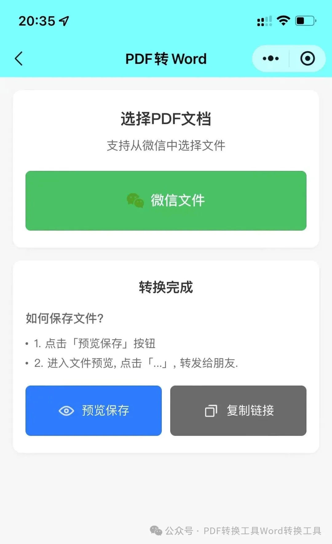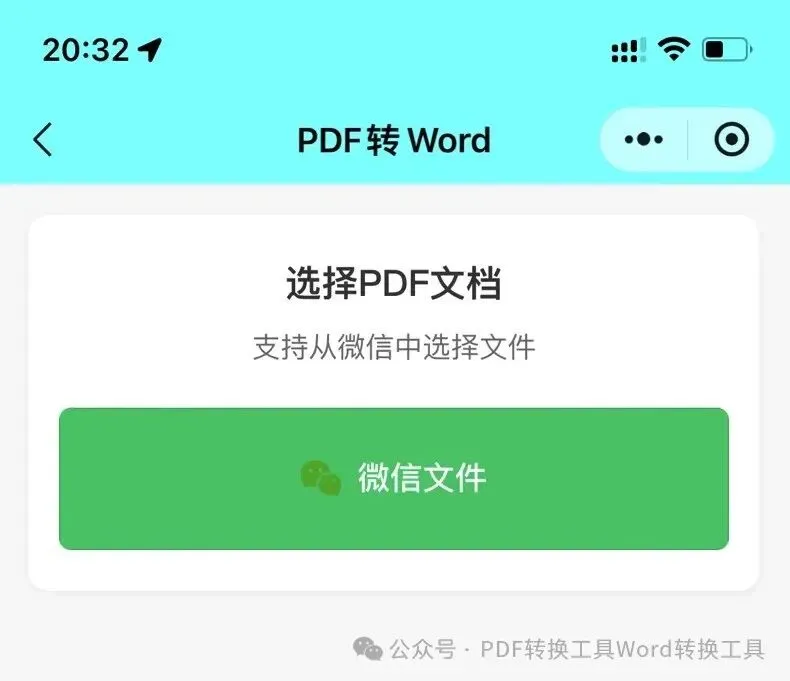 3步搞定免费PDF互转Word!无套路、无限制下载次数、不用开会员、不用看广告. PDF转Word,无疑是许多小伙伴在工作和学习中绕不开的一道坎,由于PDF文件的特殊性,若要进行编辑修改,往往需要将其转回Word格式。 今天分享一款免费PDF互转Word工具,无套路、无限制次数、不用开会员、不用看广告,上传文件即可解析下载。 具体步骤如下 第一步:点击:PDF互转Word 第二步:从微信选择PDF或Word文档转换: