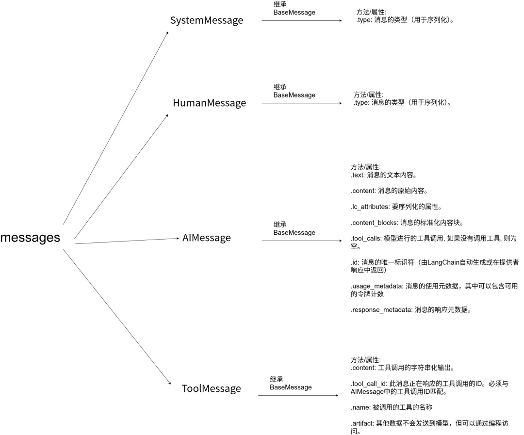– LangChain提供了一种标准消息类型,适用于所有模型提供者,确保无论调用何种模型,行为都是一致的。