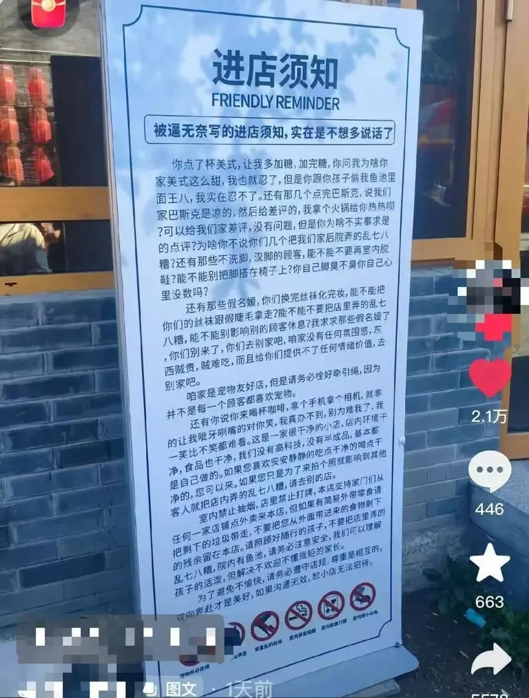 According to Jimu News, a café’s in-store rules in Qingzhou Ancient City, Weifang, have recently sparked heated online discussions. The 700-word notice includes standard prohibitions such as no indoor smoking and no card playing indoors, alongside unusual rules like “no discarding stockings randomly” and “no catching small turtles indoors.” These rules have piqued many netizens’ curiosity and earned widespread empathy for the shop owner.