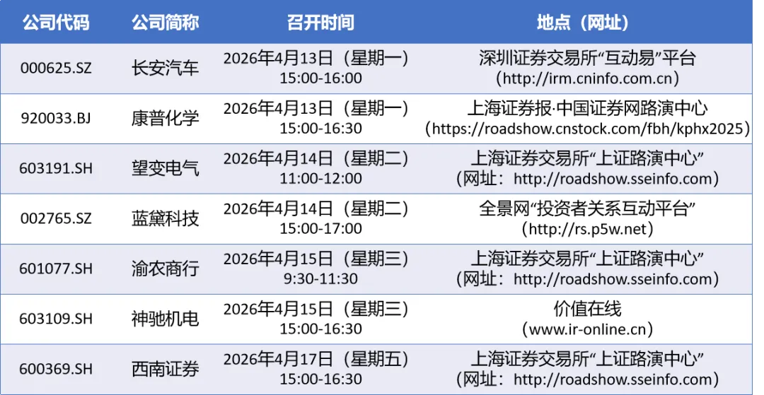 重庆上市公司2025年年报业绩说明会一周预览(4.13—4.17)