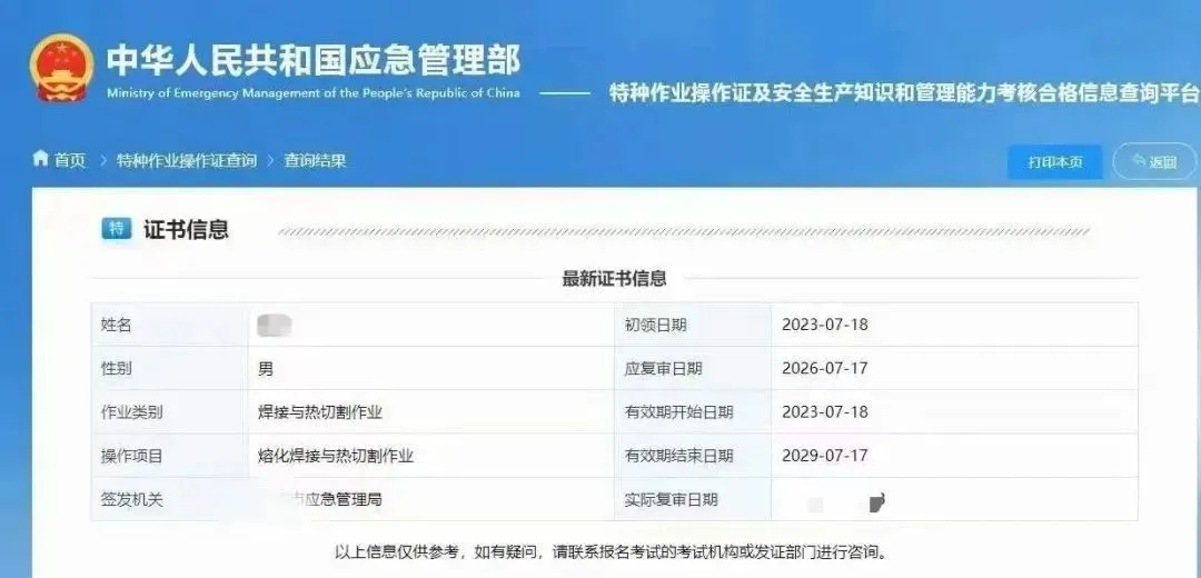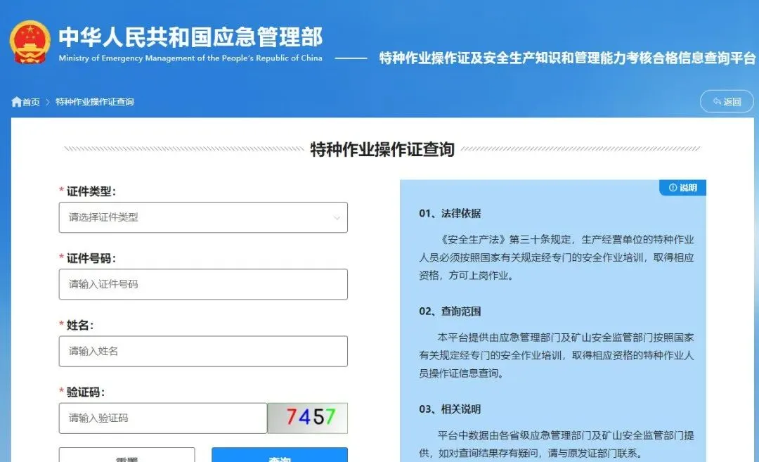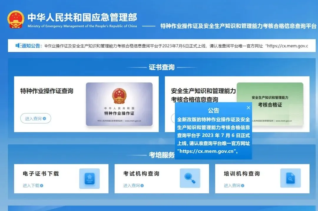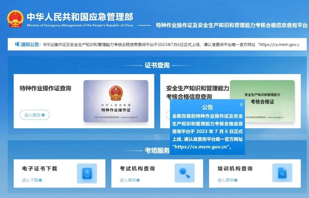 查询特种证书的应急部网站:cx.mem.gov.cn
