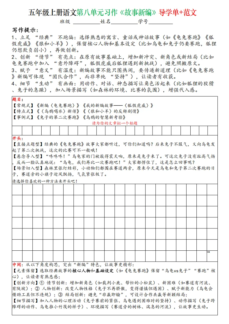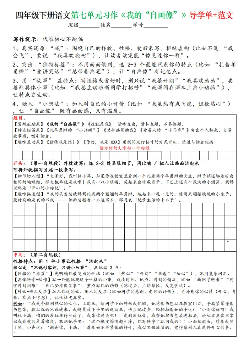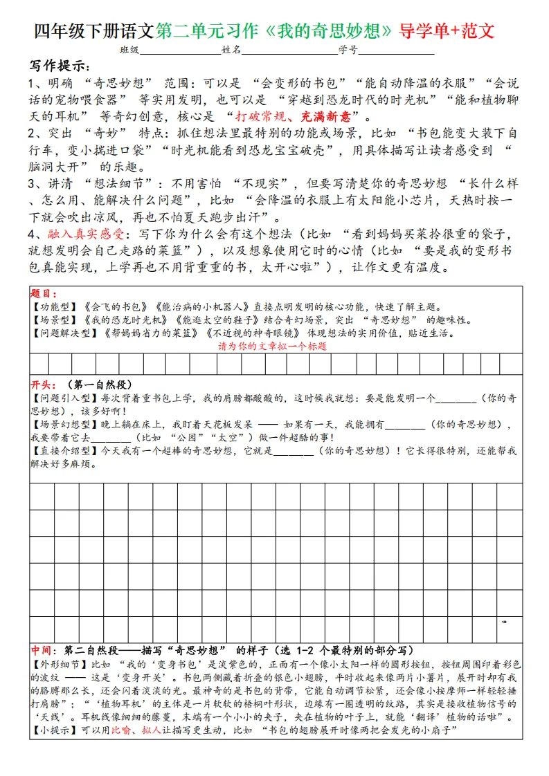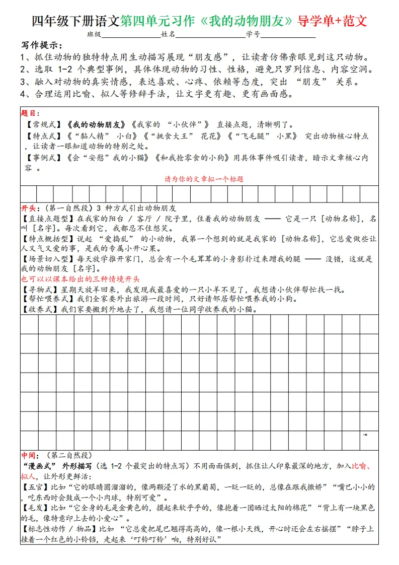 🌸今天给家长分享的是:26四年级下册语文《作文导学单》|电子版可打印