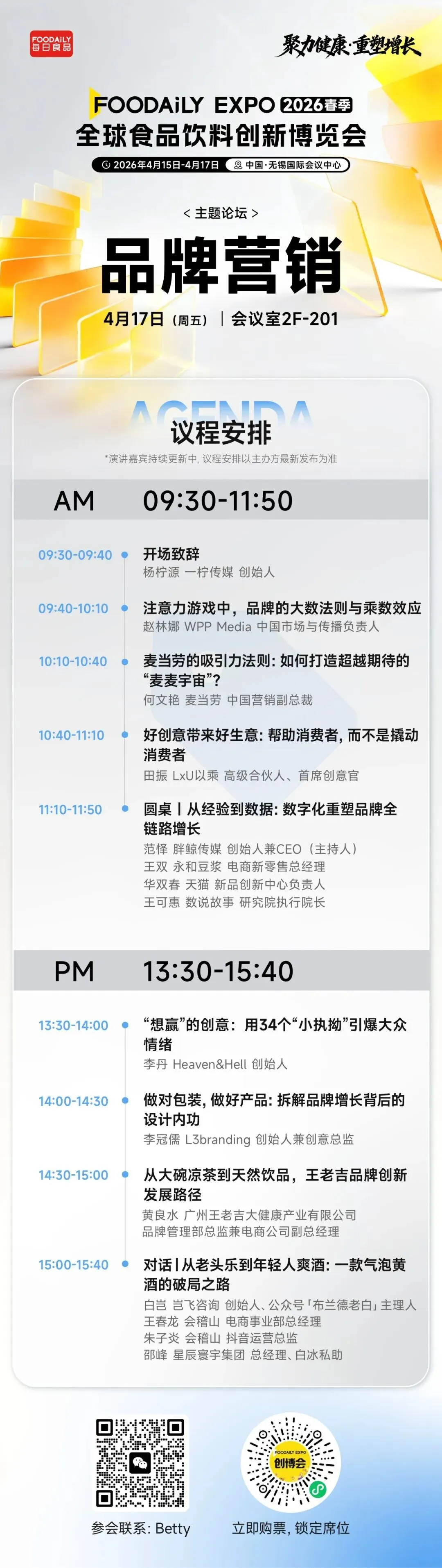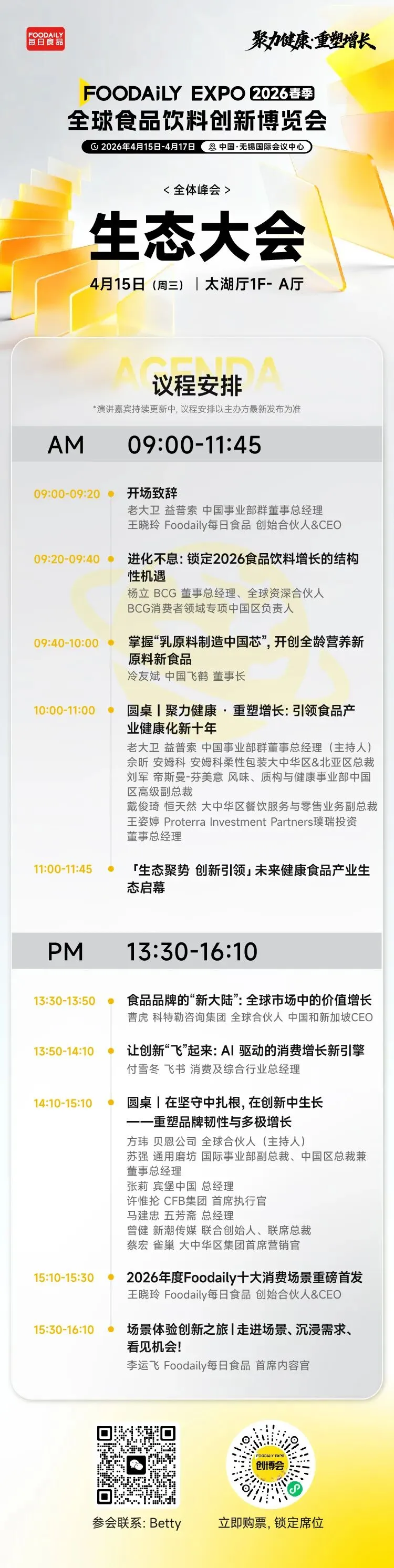纯净版议程 | 2026 Foodaily创新博览会完整议程&嘉宾,176 位重磅嘉宾齐聚无锡!