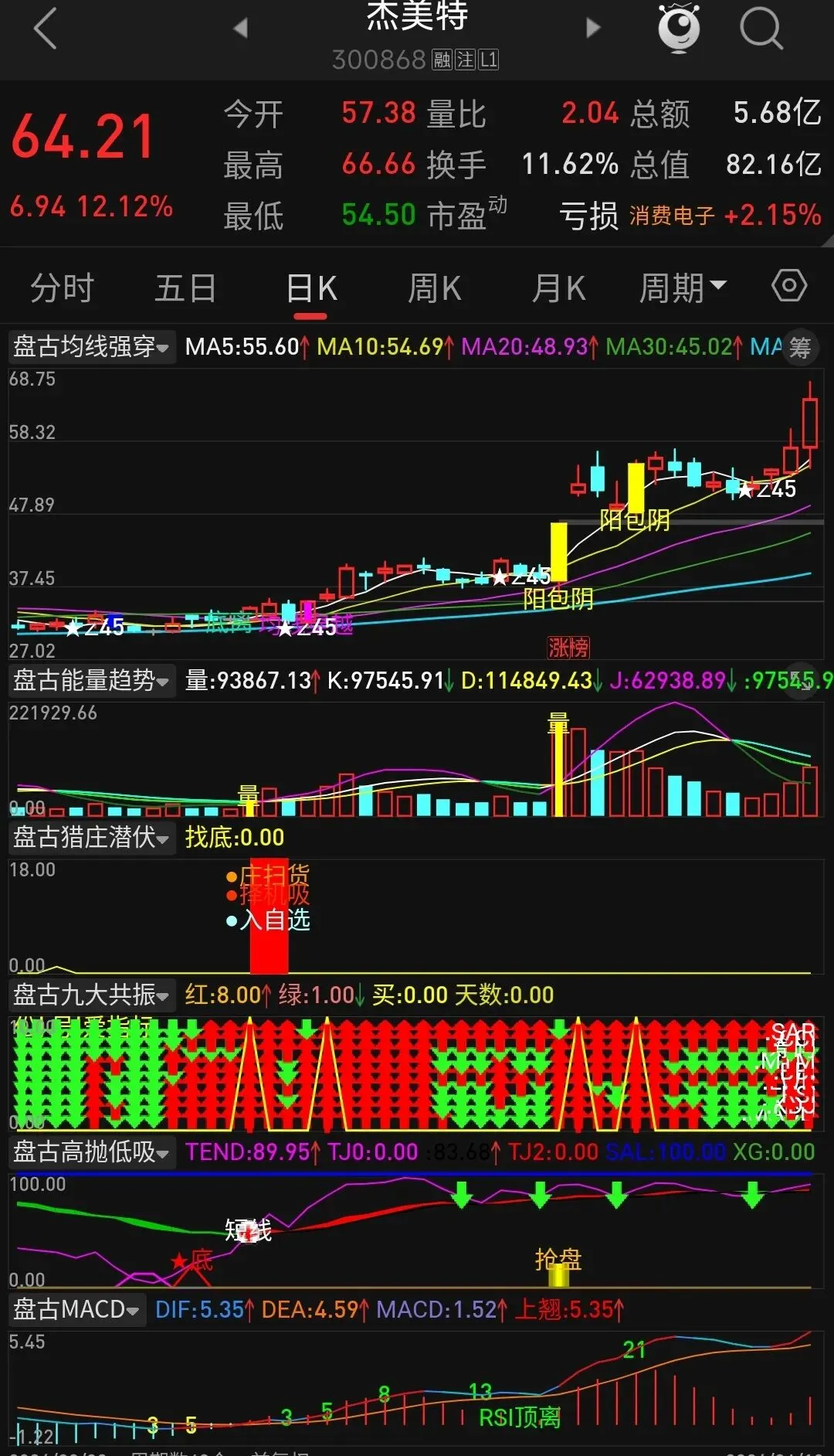 STICKLINE((((ZGZTB6) >= (64.5)) AND ((ZGZTB8) >= 65)) AND ((MA(C,1)) > (ZGZTB11)),C,O,3,0),COLORYELLOW;
