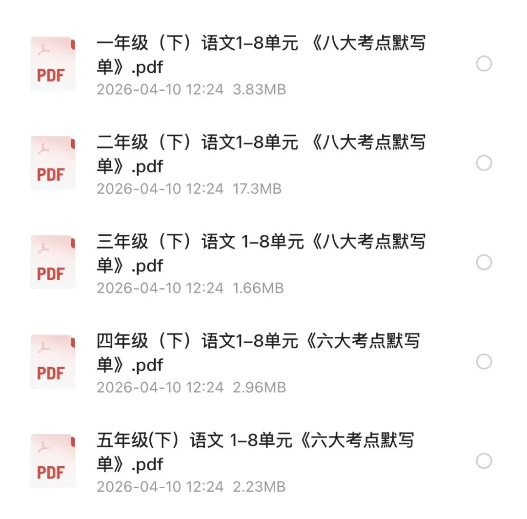 ✅一~五年年级(下)语文1-8单元 《八大考点默写单》