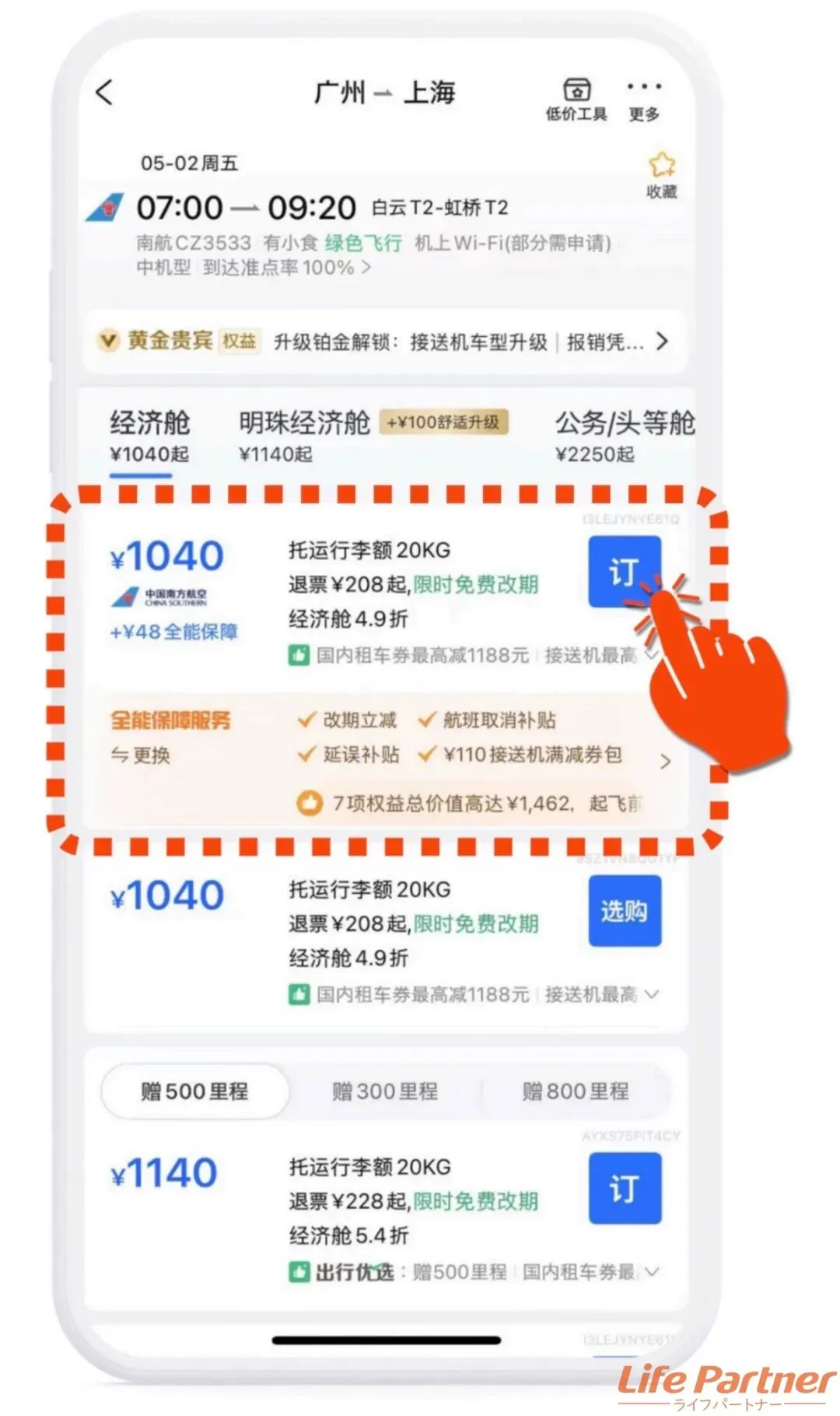 (※今回はエコノミーのプランです)