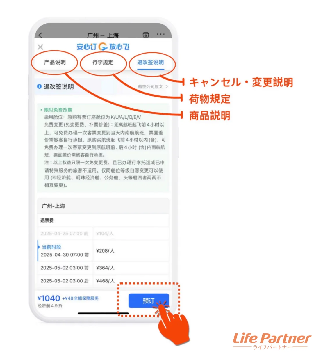 内容をチェックして、問題なければ下部の「预订」をタップ