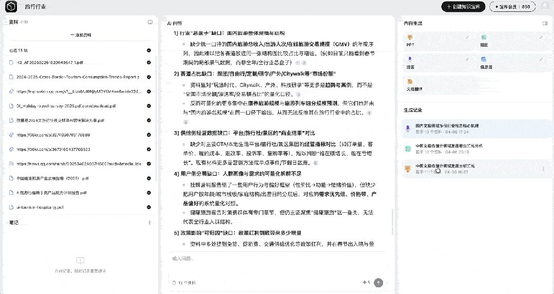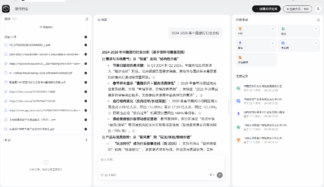 十几份资料,几秒钟给你一张行业全景图,一下子就从碎片变成了体系。以前要读完所有材料才能拼出来的东西,现在一个问题就拿到了。