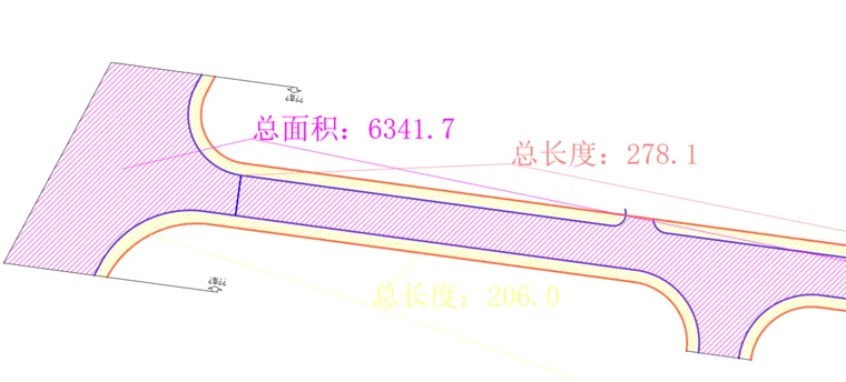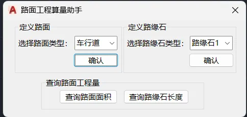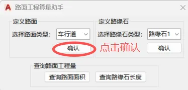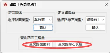 6、分别点击“查询路面面积”、“查询路缘石长度”,再选择CAD对应的对象,即可在CAD中标注相关工程量;