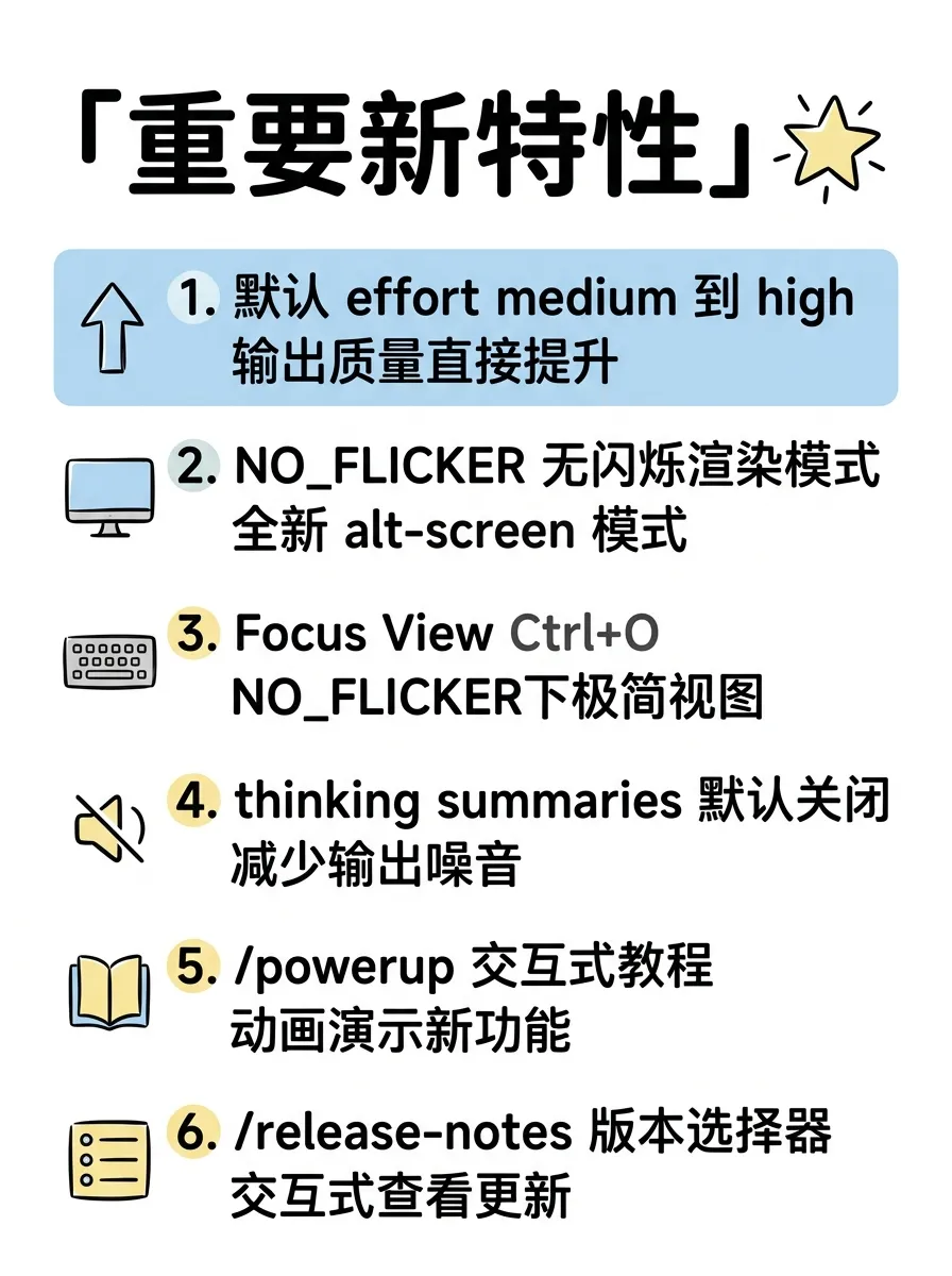 除了安全,effort 默认值提升、NO_FLICKER 渲染、MCP 内存泄漏修复这几个改动对日常体验的提升也很实在。