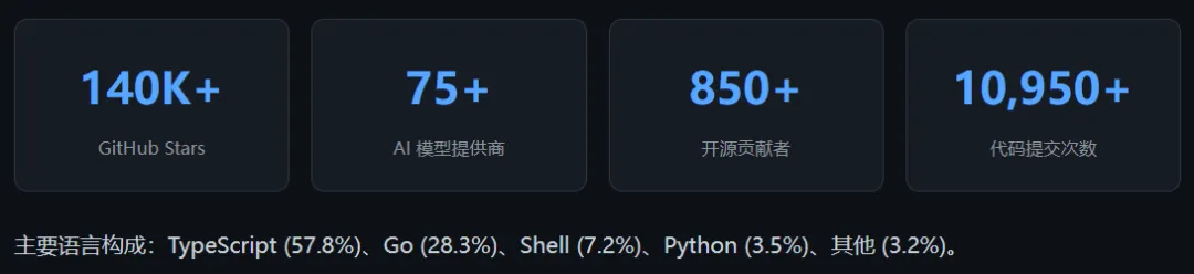 代码库以TypeScript(57.8%)为主,核心 TUI 和 Agent 逻辑均由 TypeScript 编写;Go(28.3%) 则承担了底层二进制工具和 LSP 桥接模块。这种组合兼顾了前端生态的丰富性和系统级代码的性能需求。