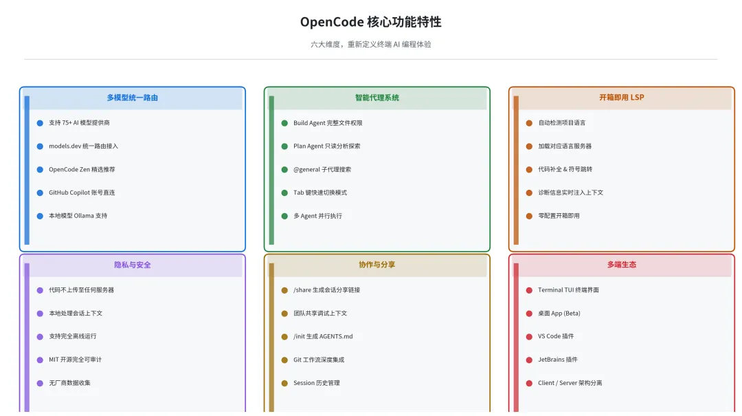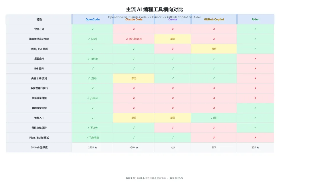 OpenCode 代表了一种与商业 AI 编程工具截然不同的路线:开源、隐私、无厂商锁定。在 AI 能力快速平权(各家模型差距缩小)的背景下,工具层的开放性和可组合性正变得越来越重要。