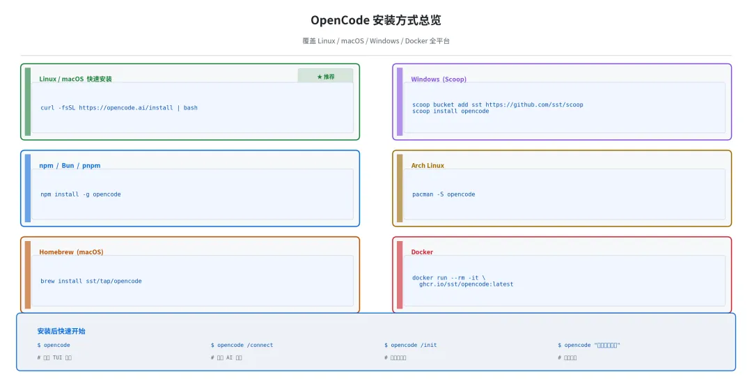 printf("hello world!");# 一行脚本安装(推荐)$ curl -fsSL https://opencode.ai/install | bash