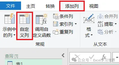 7. 选择工具栏的“添加列”–>“自定义列”