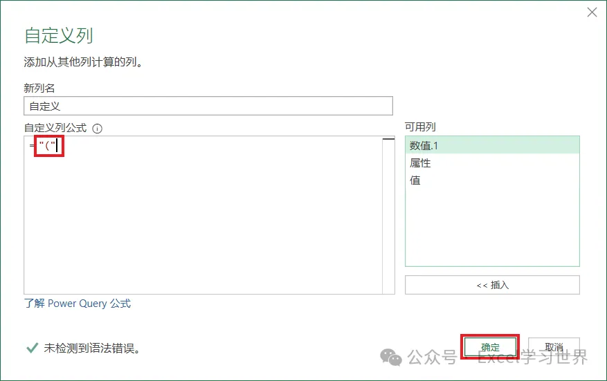 10. 输入 “(“ –> 点击“确定”