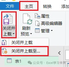 17. 选择工具栏的“主页”–>“关闭并上载”–>“关闭并上载至”