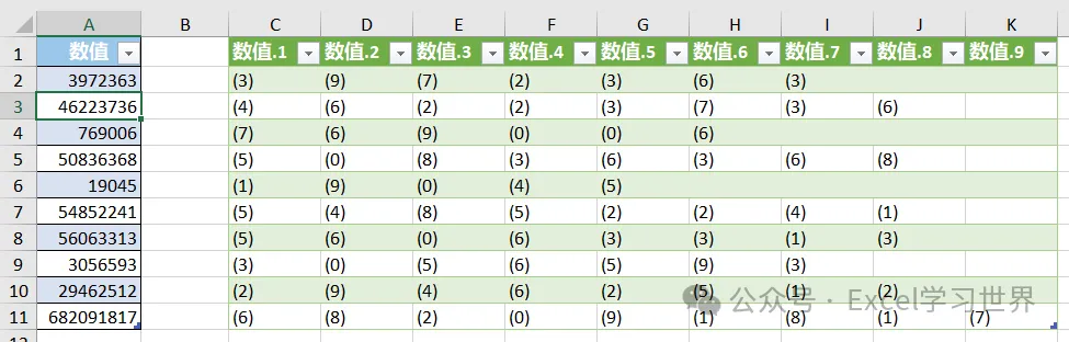 将 Excel 单元格中的每一位数字提取出来,加上 ()