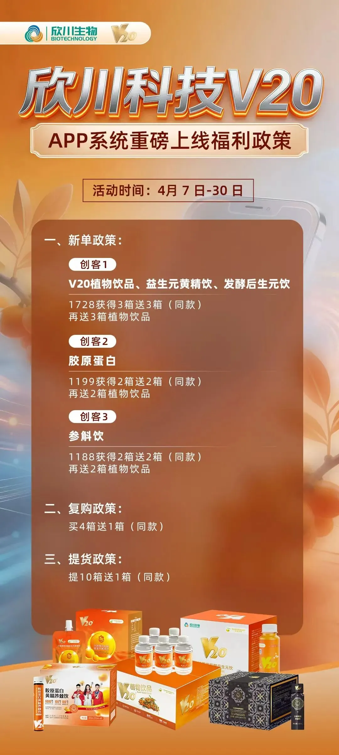 V20植物饮品 | V20欣川科技 APP系统上线福利政策