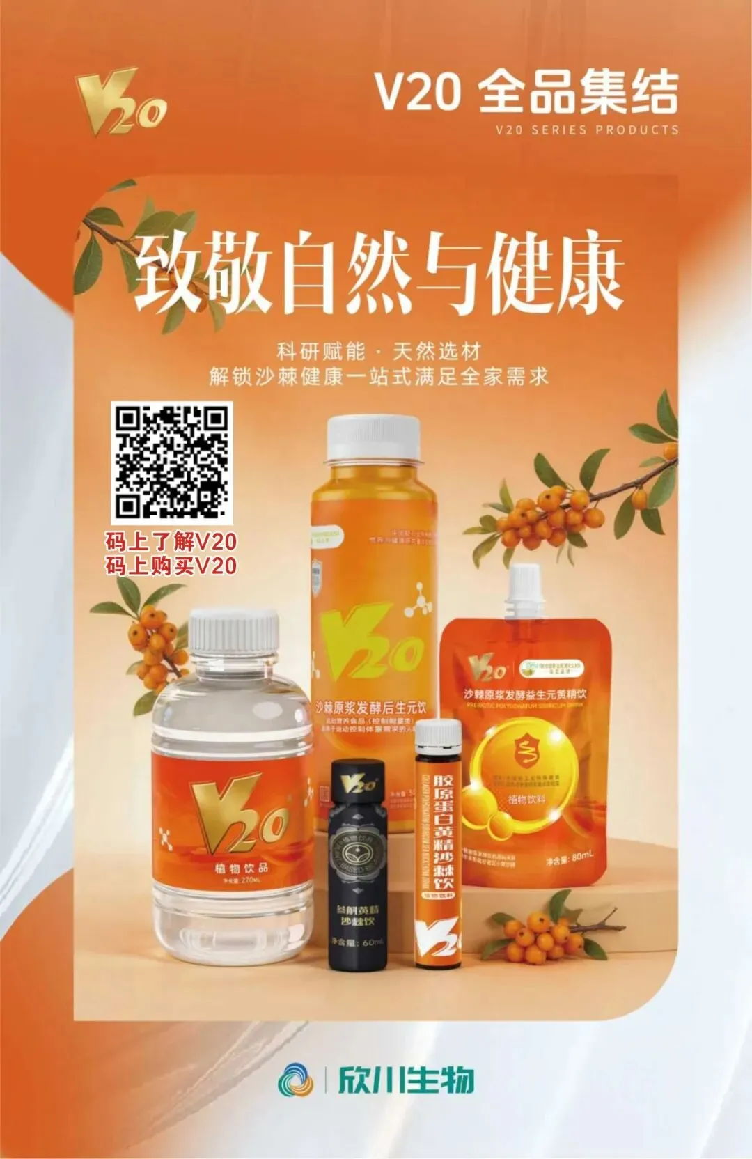 更多沙棘系列新品・V20 乳酸钙植物蛋白沙棘饮…即将上市,为品牌出海增添全新竞争力。