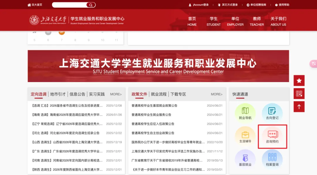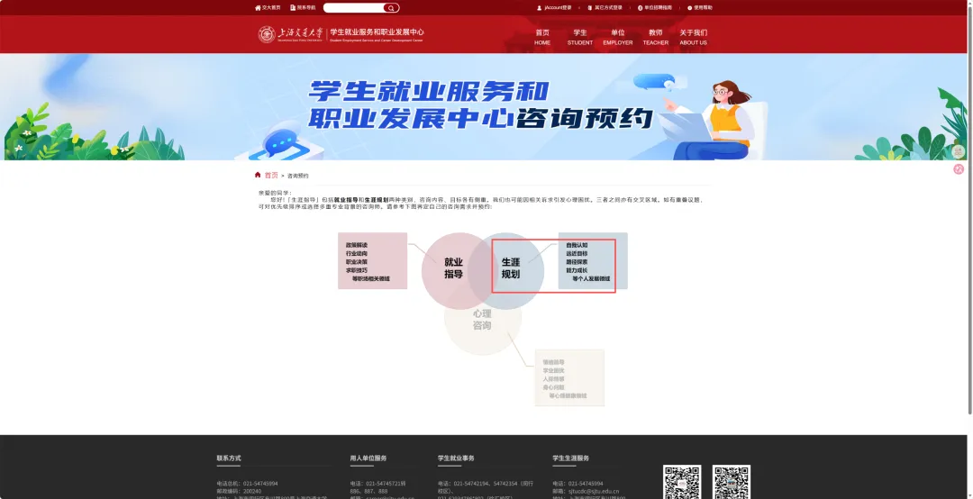 为了保证咨询质量,我们将通过交大就业网(https://www.job.sjtu.edu.cn/career/index/zxyy/zxyySelect)开放预约渠道。