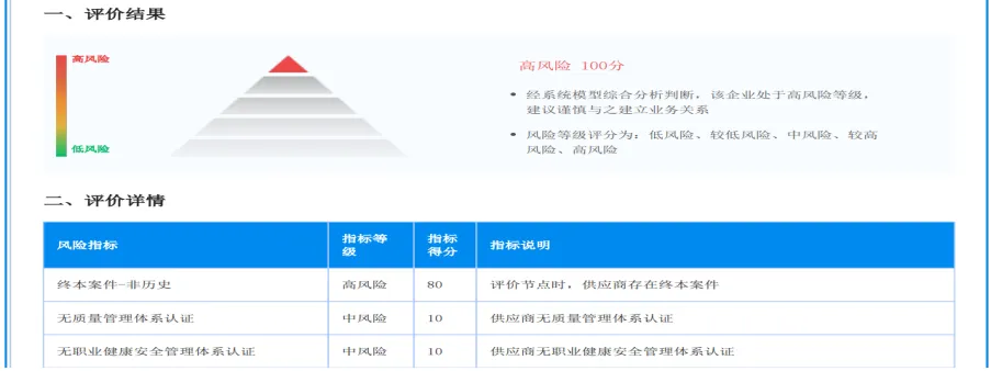 ●从准入审核到信用评价,从风险筛查到动态监控,全方位防范供应商风险。
