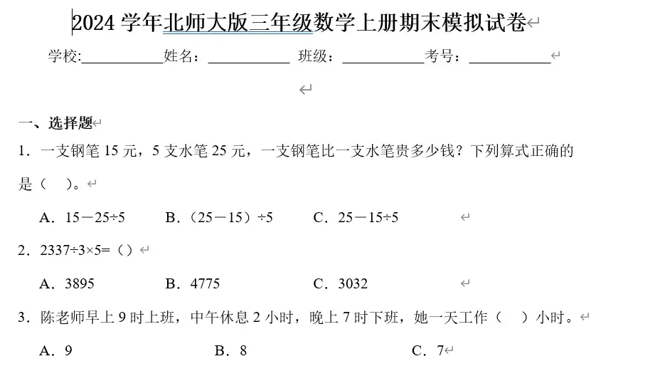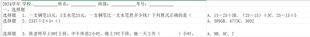 给大家看一下效果对比:这是原本 Word 里的题目格式: