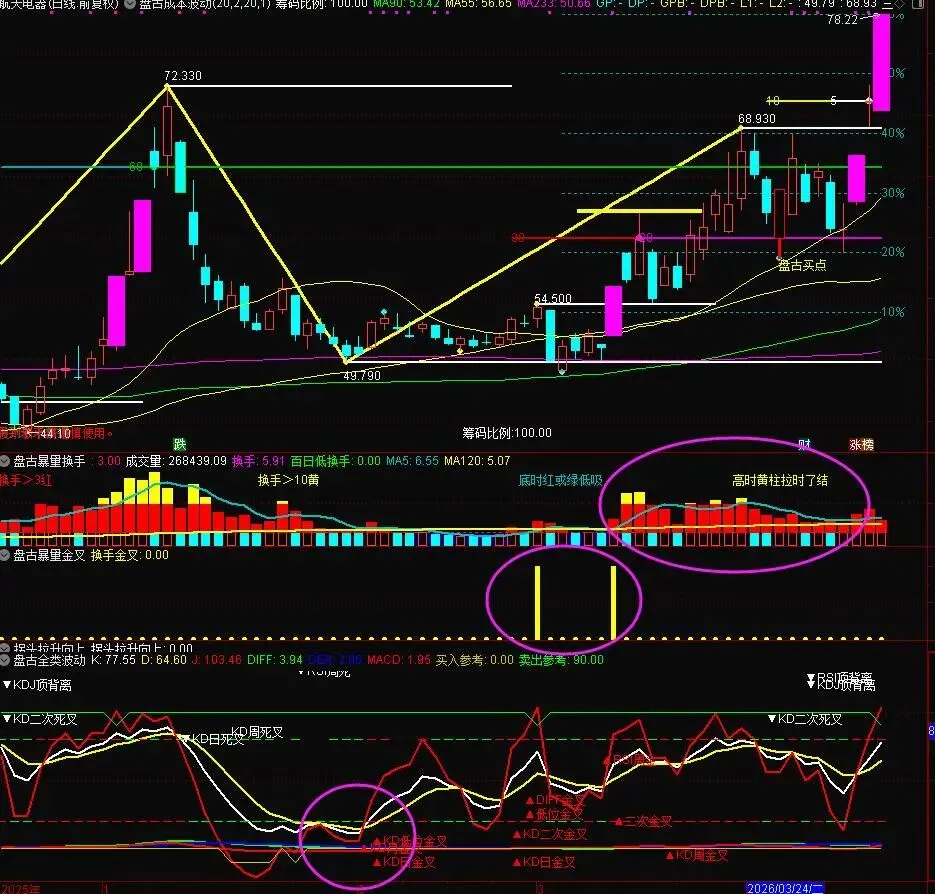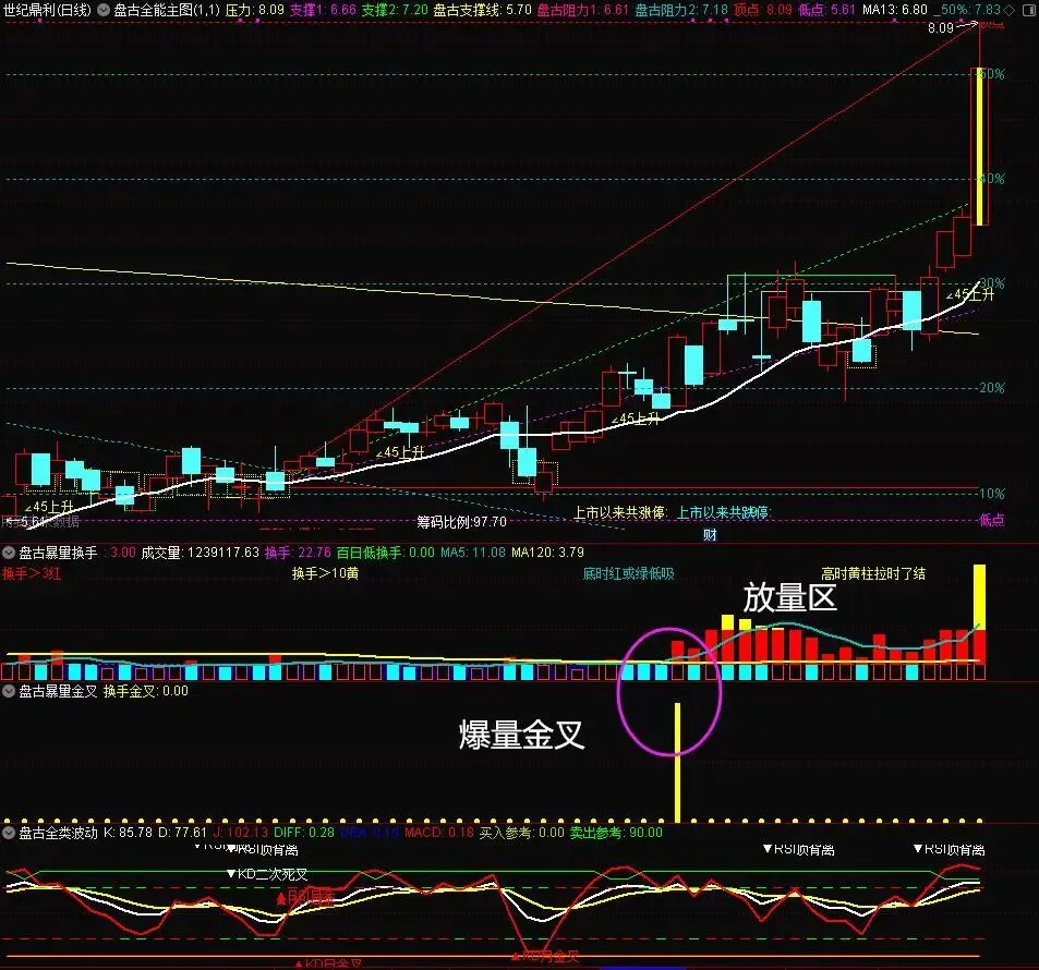 这提供了“量能先行”的预判依据,是捕捉“旱地拔葱”行情的重要线索 。主要就是要放量,换手率金叉。