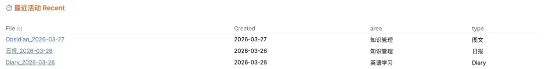 通过Dataview依旧是最方便快捷的方式,虽然现在Base数据库功能出来了,但是使用熟练了Dataview的人必然会发现,dataview通过最简单的代码,可以按照标签、文件、关键字等等快速检索和整理,形成一个可视化的表格。