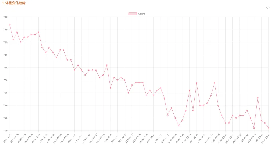 通过提炼的Templater可以很好的形成一个长期的管理,比如:每天开始记录自己的健康数据,就需要建立一个模版,我自己就是通过固定的模版,记录:体重、体脂、BMI、内脏脂肪、是否运动、速度这几个核心指标,来长期关注自己的身体变化趋势。