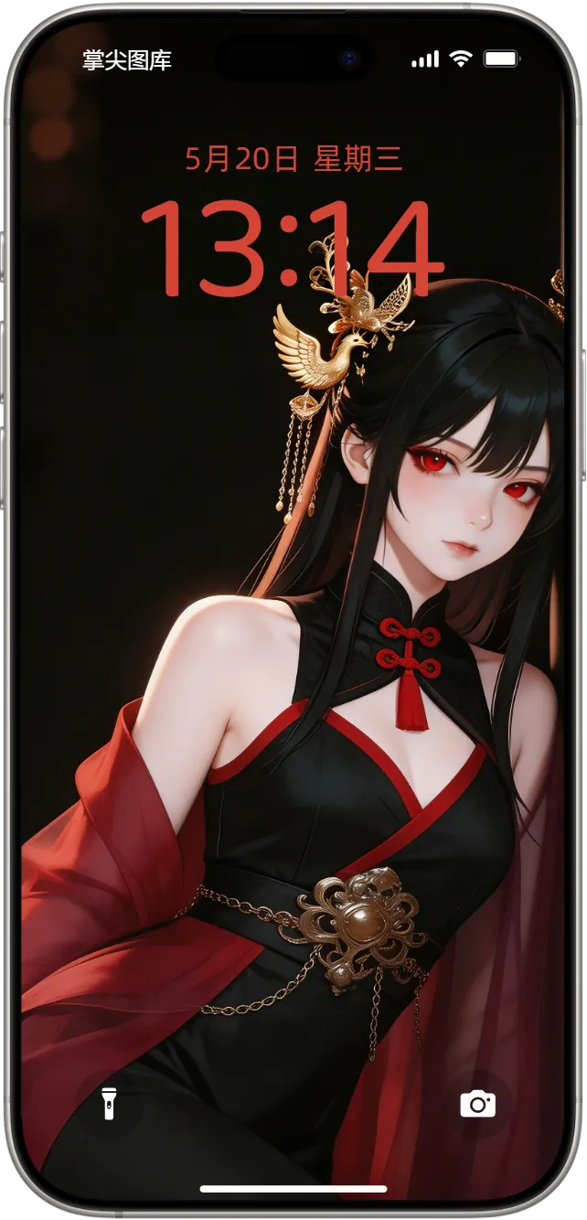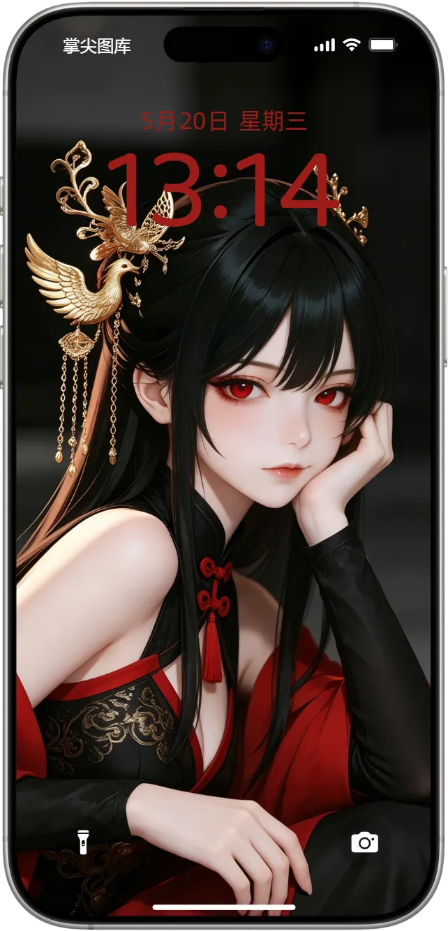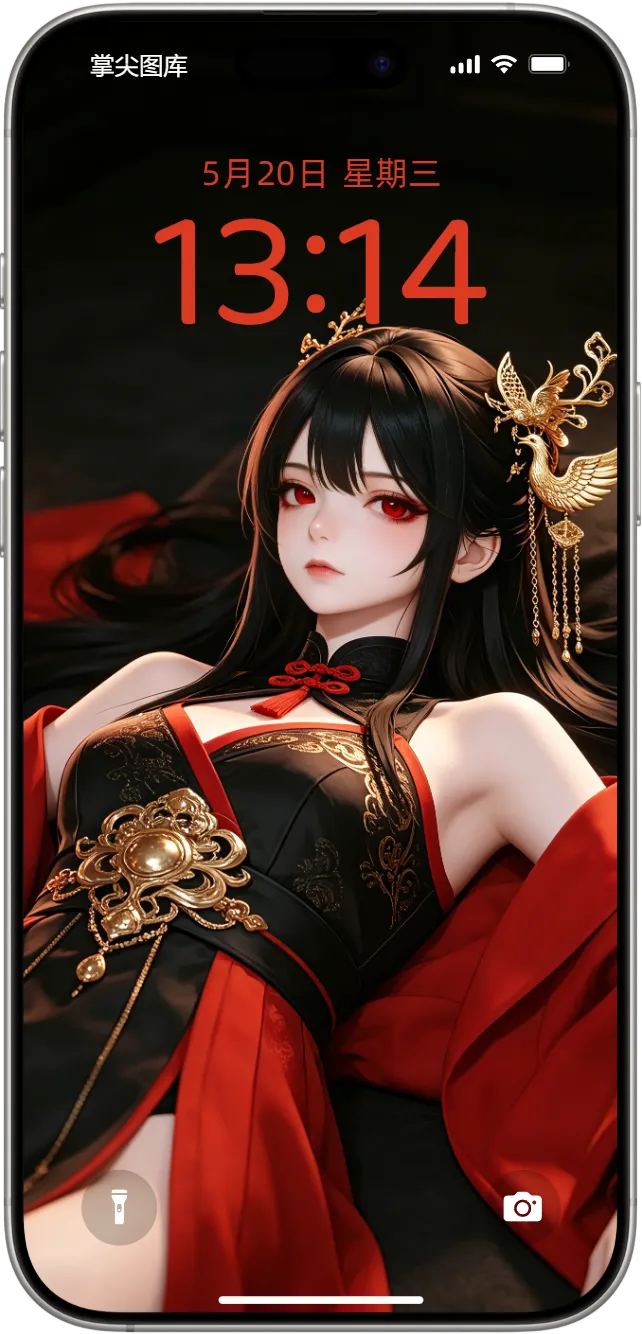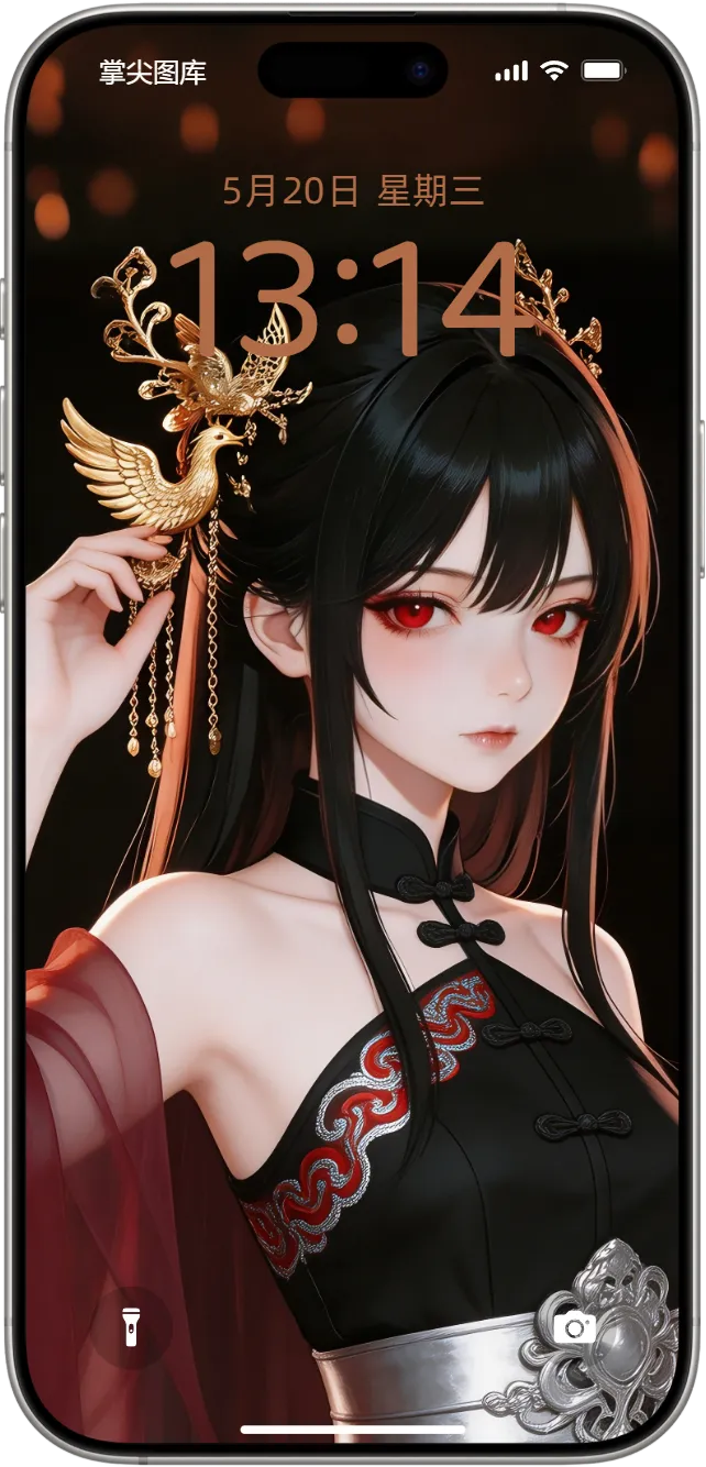 二次元国风锁屏壁纸 红瞳妖姬全面屏 安卓 iPhone 通用