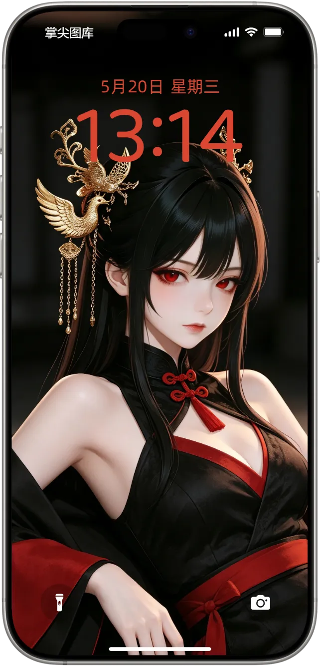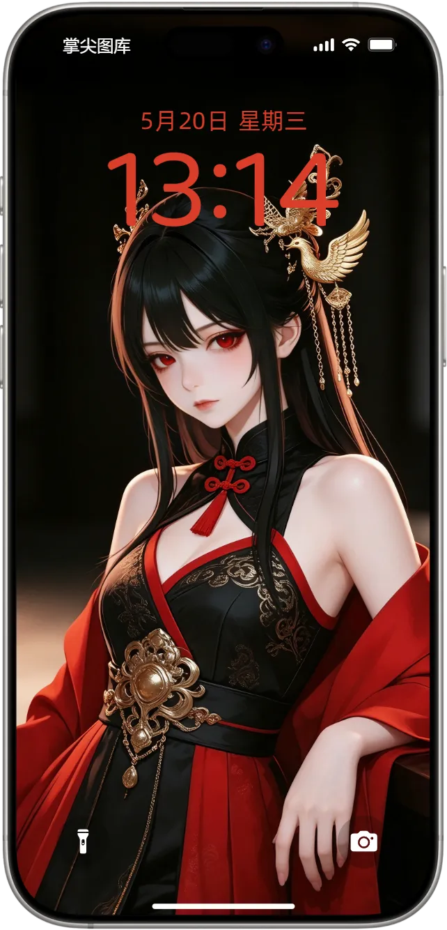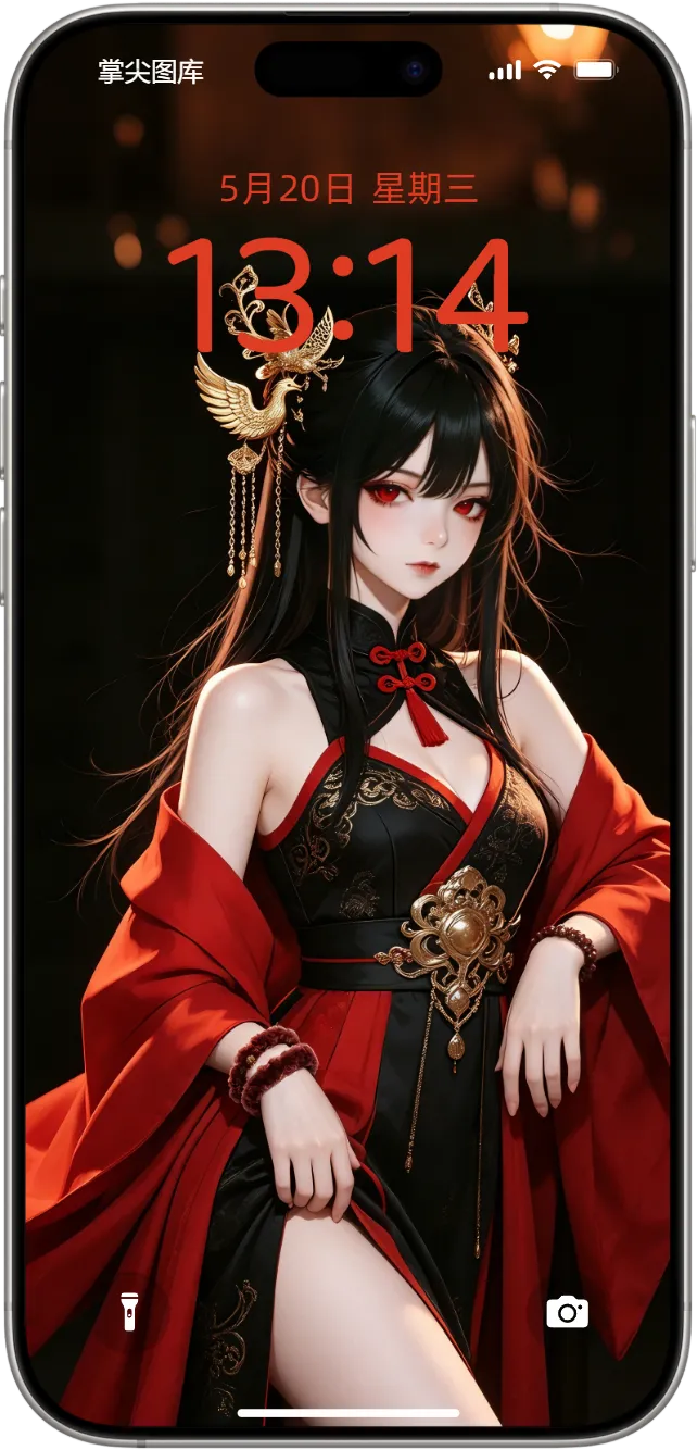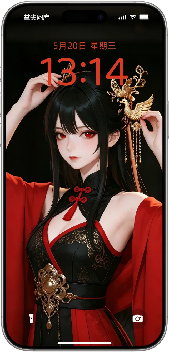 二次元国风锁屏壁纸 红瞳妖姬全面屏 安卓 iPhone 通用