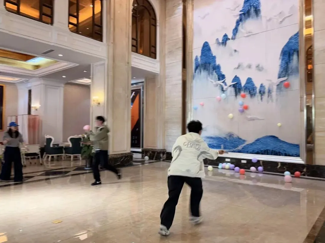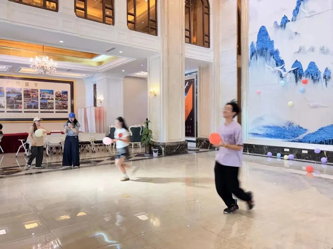 最刺激的闯关赛来啦!同学们手持球拍、颠球冲刺,小心翼翼奔向终点,戳破气球取出碎片,和队友合力拼出完整单词句型。球落地就重新出发,大家不气馁、不放弃,接力配合、奋勇争先。全场欢呼不断,在紧张又欢乐的竞技中,边玩边记,收获知识与快乐!
