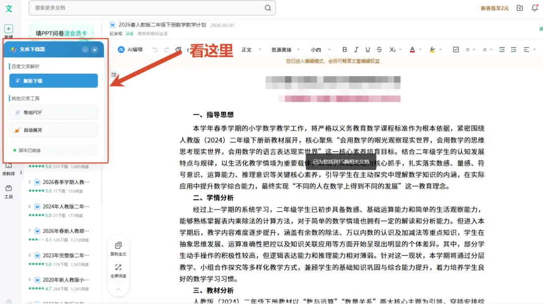 以上两种方法已经够用了。如果嫌一个一个文档操作太麻烦,我还帮你整理了——《百度文库油猴脚本安装包》