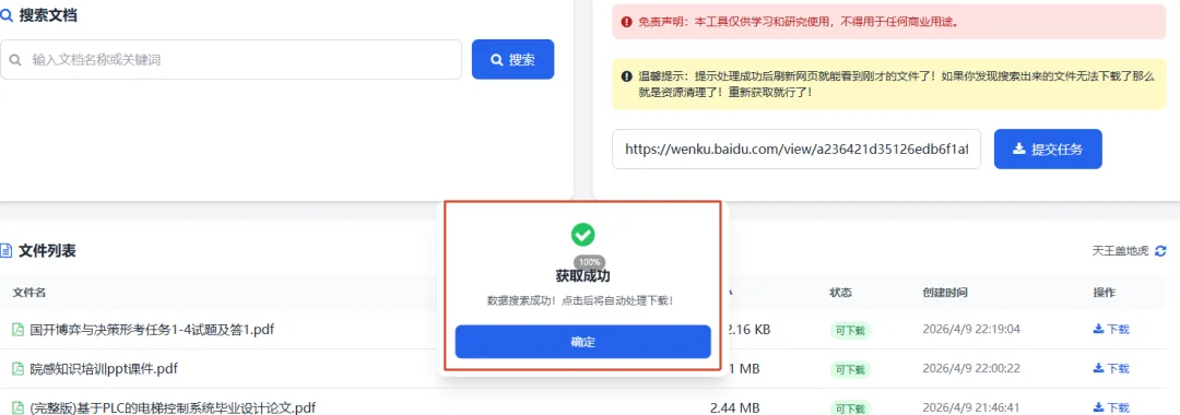 随时失效:这些工具大多已经停止更新,下载出来的文件要么是乱码,要么只有前几页,根本用不了,而且百度平台新出的一些规则,可能老的下载器无法适配。