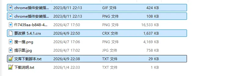 包括:Tampermonkey插件安装包、实测可用的文库下载脚本链接、浏览器插件安装指引