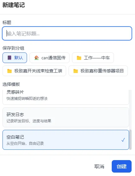 之前遇到了点击新建笔记忘记输入名称直接点创建后不能输入信息的bug,现在已经修复了。