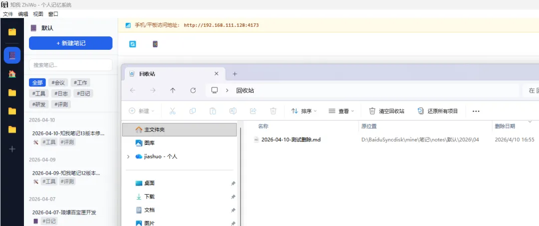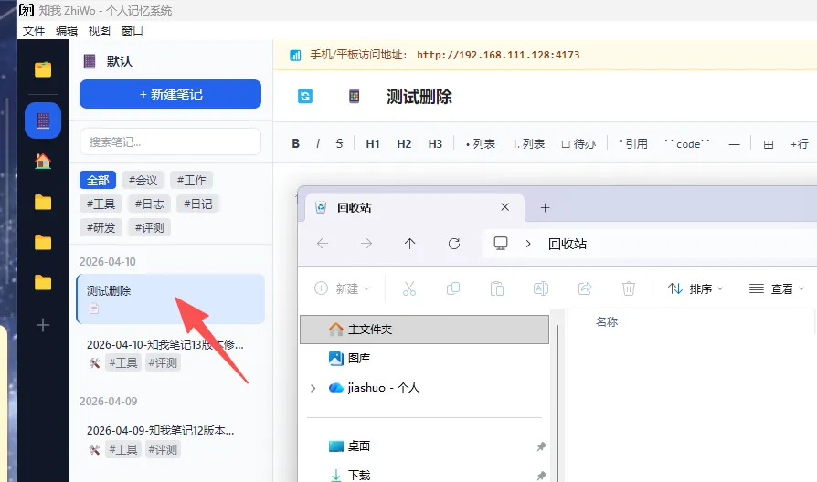 有一次不小心误删了一篇笔记,直接消失实在是有点崩溃。为了防止误删,增加了删除到回收站。这样还有补救的机会。