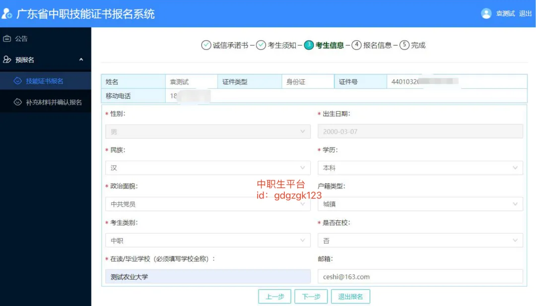 第二步:填写考生信息