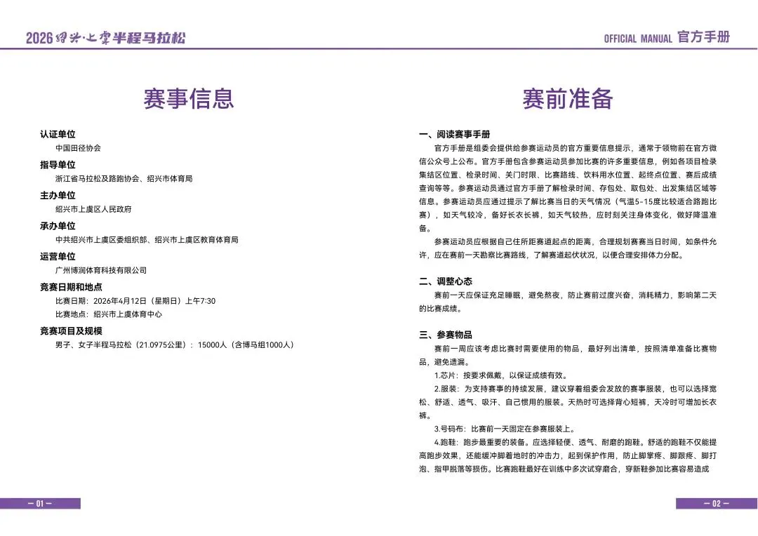 赛讯|2026绍兴·上虞半程马拉松电子版官方手册正式上线,你想知道的赛事信息都在这里~