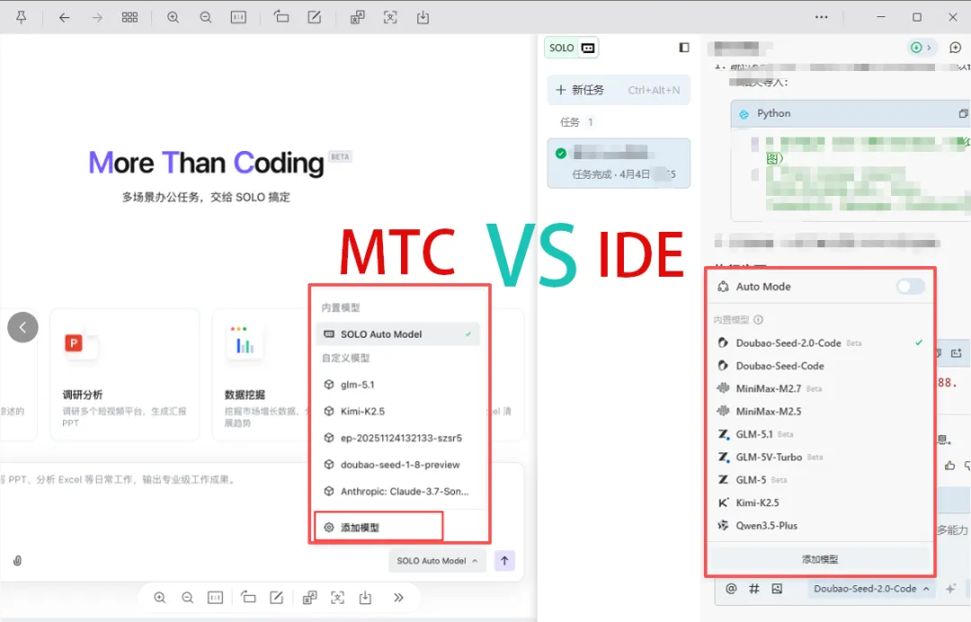 说白了,MTC独立端和TRAE IDE的区别,有点像”点外卖”和”自己在家做”——MTC更省心,但IDE也不差,而且随时能用,不用等码。