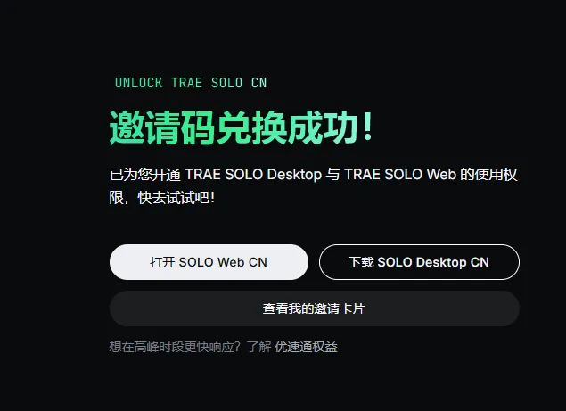 TRAE SOLO独立端开放了在线抽码通道,每天凌晨0点会刷新一批新的内测码。