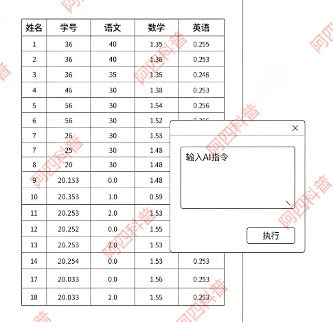 ❌ 错误指令1:「把学生姓名中间字改成星号」 实测结果:完全没反应,AI无法识别操作范围 -