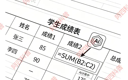 ❌ 错误指令:「请计算全班学生数学学科总成绩」 实测结果:直接把表格里所有数据改成了0,直接把表格干废,还要手动恢复 -