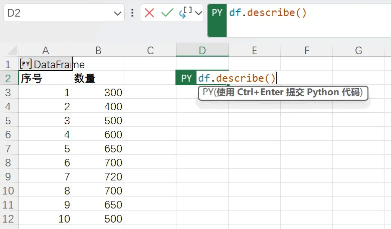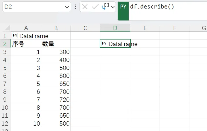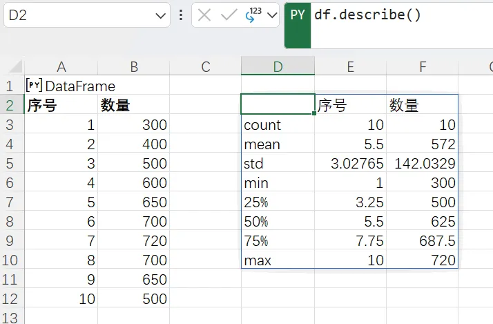 这样,我们使用pandas库的describee()方法轻松地对Excel中的数据进行了详细的统计分析。